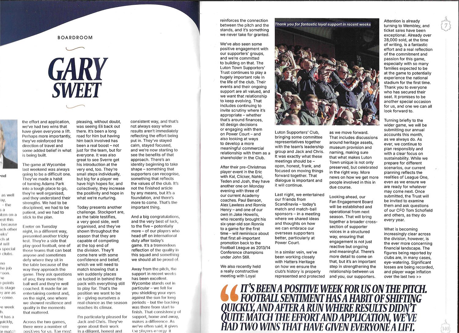 Luton er blitt tildelt 2976 billetter til lørdagens bortekamp, hvor alle billettene også er solgt. Sendingen på VIAPLAY starter på lørdag kl 1550 skandinavisk tid, og har avspark kl 1600. Kampen sendes også som radiostream på Hatters Player, hvor Simon Pitts kommenterer kampen.